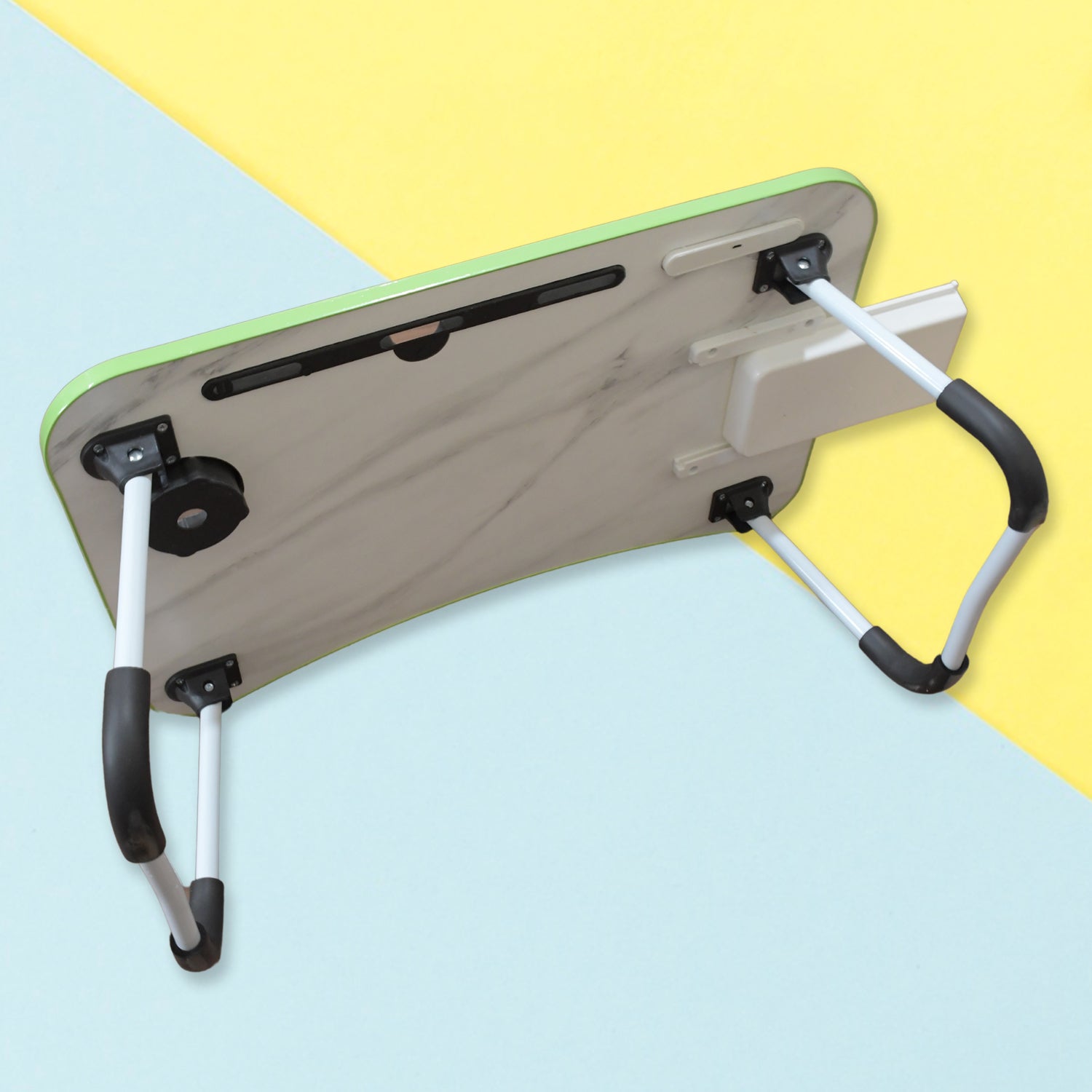 MultiPurpose Study Table Foldable Portable Notebook Bed Lap Desk Tray Stand Reading Holder with Coffee Cup Slot, Drawer, Fan, USB Cable & Light for Breakfast, Reading & Movie Watching (1 Pc Mix Color)