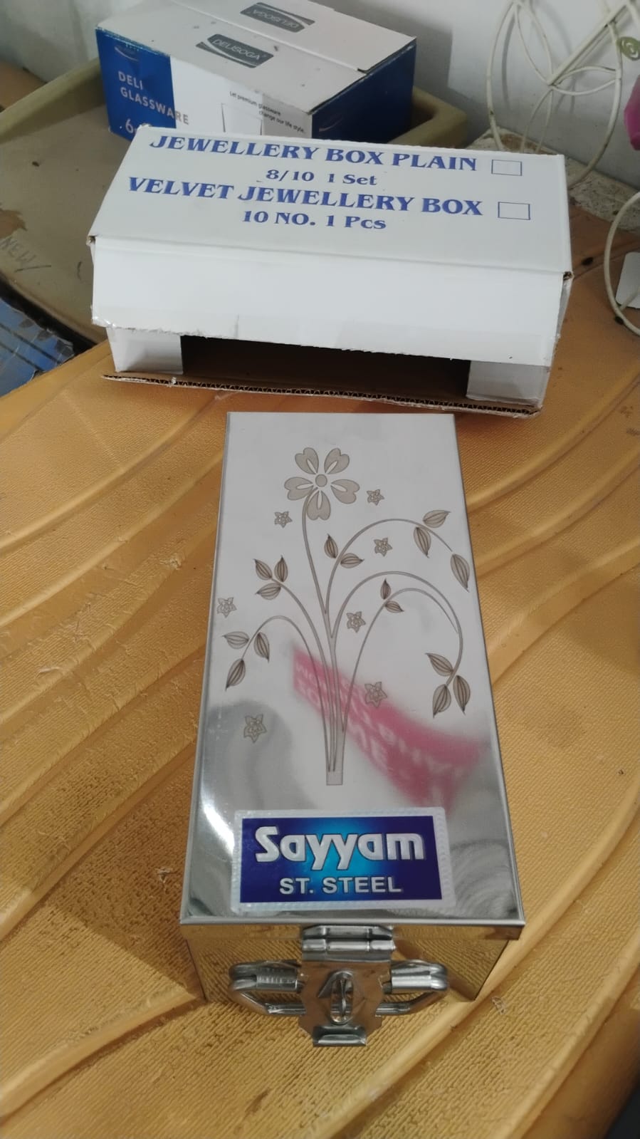 Additionally, it includes mini plastic storage containers and a removable velvet pouch kit—ideal for travel, home, or gifting on festive occasions like weddings or Raksha Bandhan. Whether used as a secure jewelry safe, pooja item organizer, or for storing valuables during travel, it offers reliable and elegant storage.