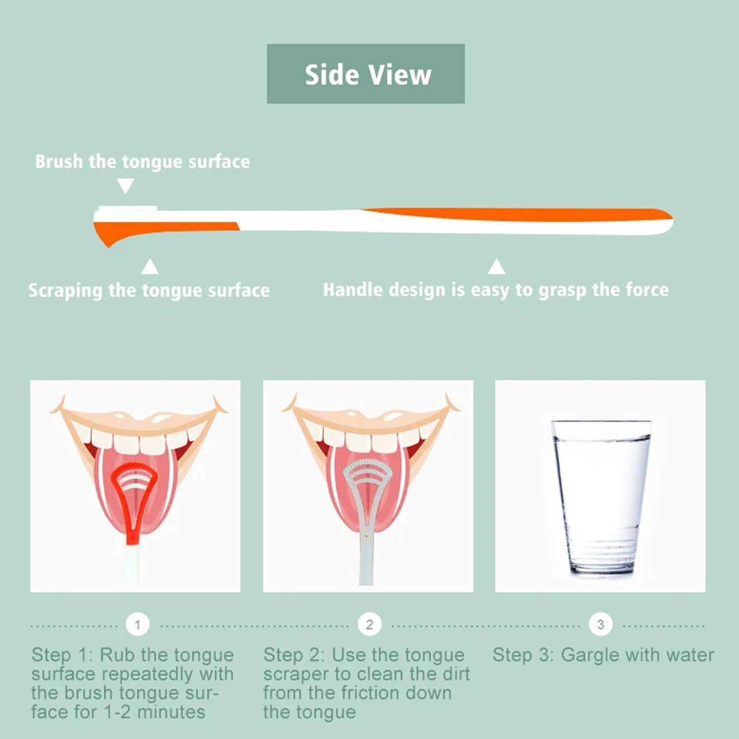 - ANTI-SLIP DESIGN: The handle part of this product adopts anti-slip design, which increases the grip and stability and avoids the tongue scraper from slipping or hurting the mouth during use.